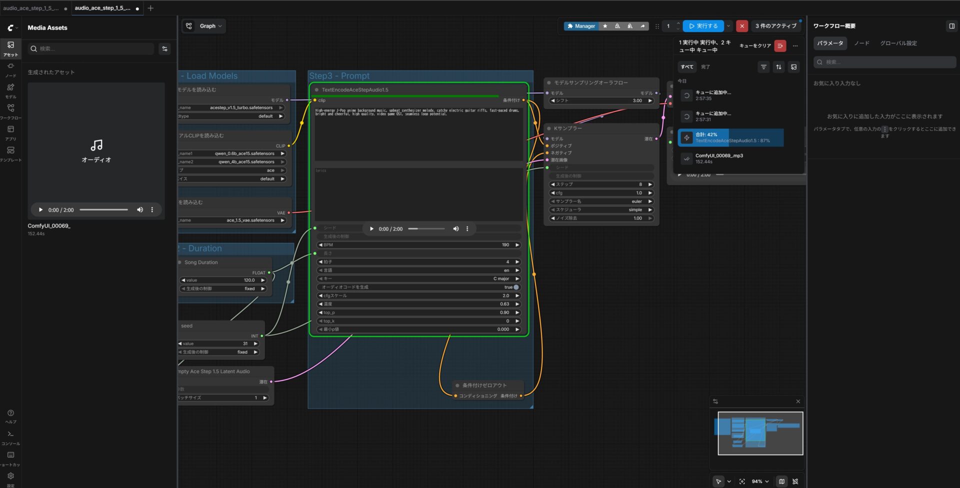 プロンプトはGeminiに作成してもらったがその他の設定が結構あり、それの設定で曲が破綻したりする。