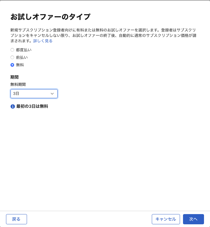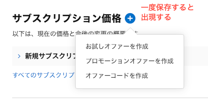- サブスクリプション価格の【+】ボタンから【お試しオファーを作成】を選択