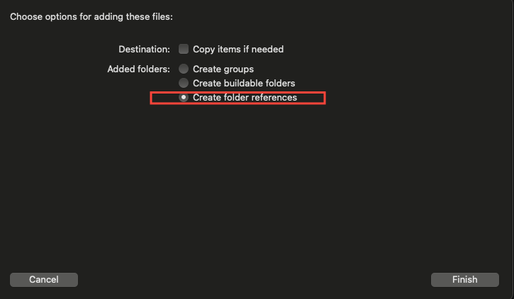 リソースフォルダをCopy Bundle Resourcesに入れる