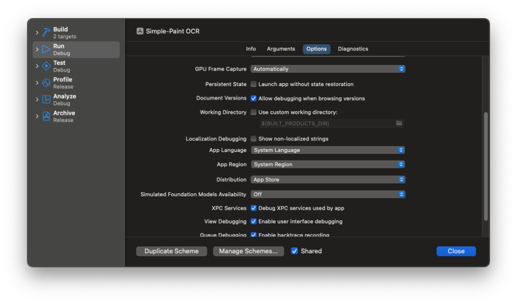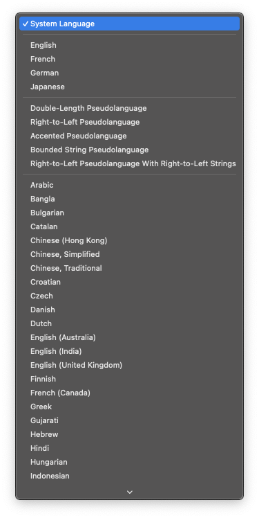 5. アプリを再度実行(Command + R)すると、選択した言語で起動します。
